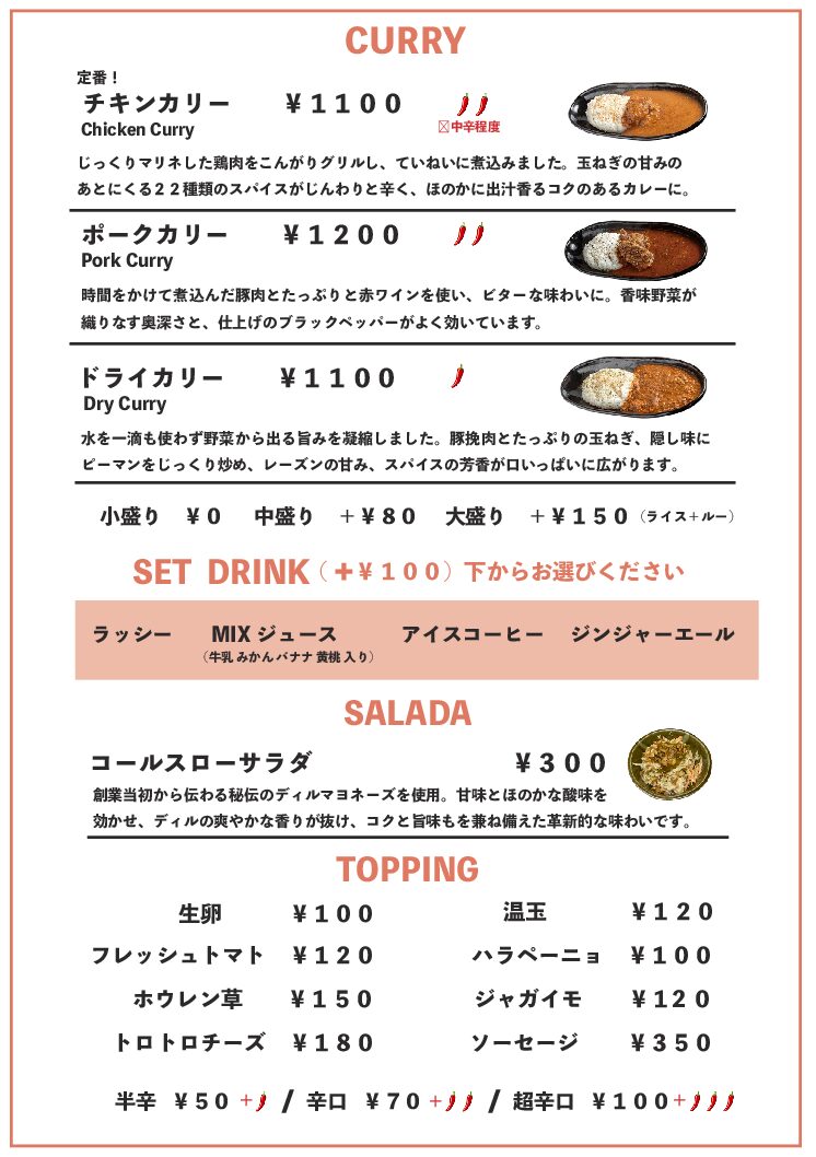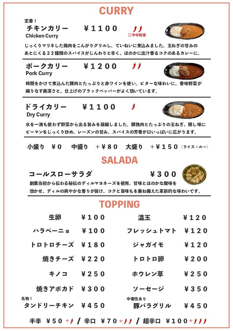 TAKEOUT OK ※容器代として+50円頂きます
